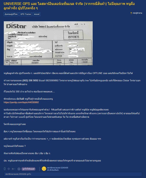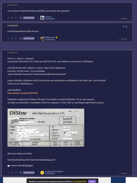 บริษัท UNIVERSE SOLUTION + Distar GPS ทำแบบนี้ไม่ดีเลย