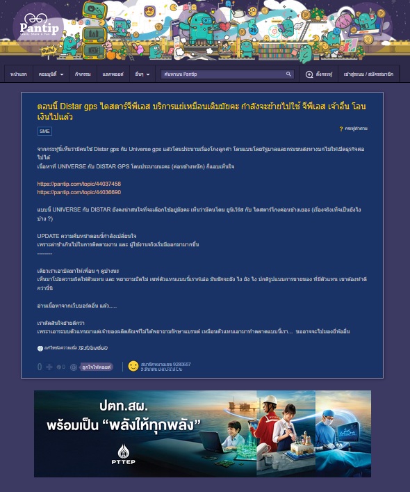 สกปรก UNIVERSE SOLUTION และ DISTAR GPS รวมถึง แอป TRIPS DD โดนด่าในสังคมออนไลน์ 02 เม.ย. 2026 15:19 #1567